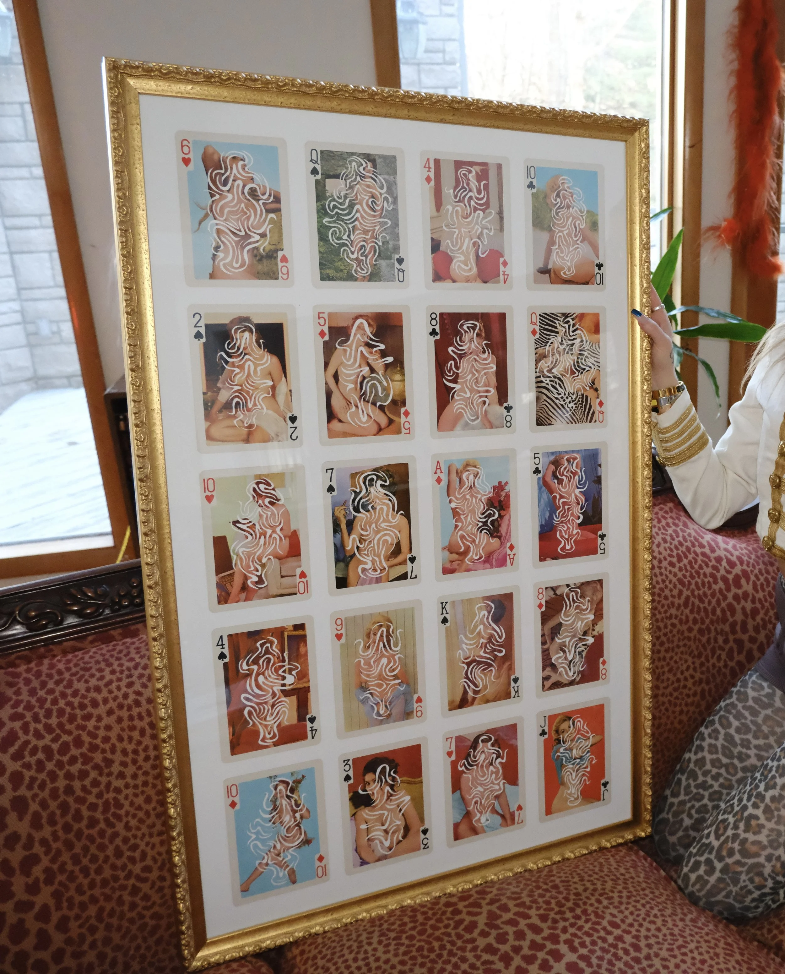 Layer by layer, these hand-cut designs peel back the polished veneer of vintage playing cards from the 1970s, revealing the complex spirit of American women. The models—idealized, white, and one-dimensional—capture the constrained vision of femininity from a time when women were stepping cautiously into the workforce, their voices often stifled. These images, relics of an era, embody an ‘ideal’ that was never real, but imposed. Beneath this facade lies the truth: we live in a world that promises freedom yet holds us in place, pressing us to remain calm, beautiful, stoic. Our rights feel close, as though within arm’s reach, yet we grasp only at shadows. This piece stands as both frustration and resilience—a testament to the strength demanded of women, to embody beauty and grace while yearning, quietly but fiercely, for liberation.